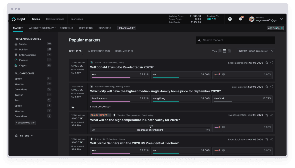 The new Augur promises to be faster and simpler — and denominated in dollars July 28, 2020, 6:08PM EDT • Ethereum