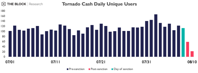The day after the sanctions, just $6 million was deposited into the protocol, according to data from The Block Research. This represented a 78.5% decline compared to the same length of the previous week.