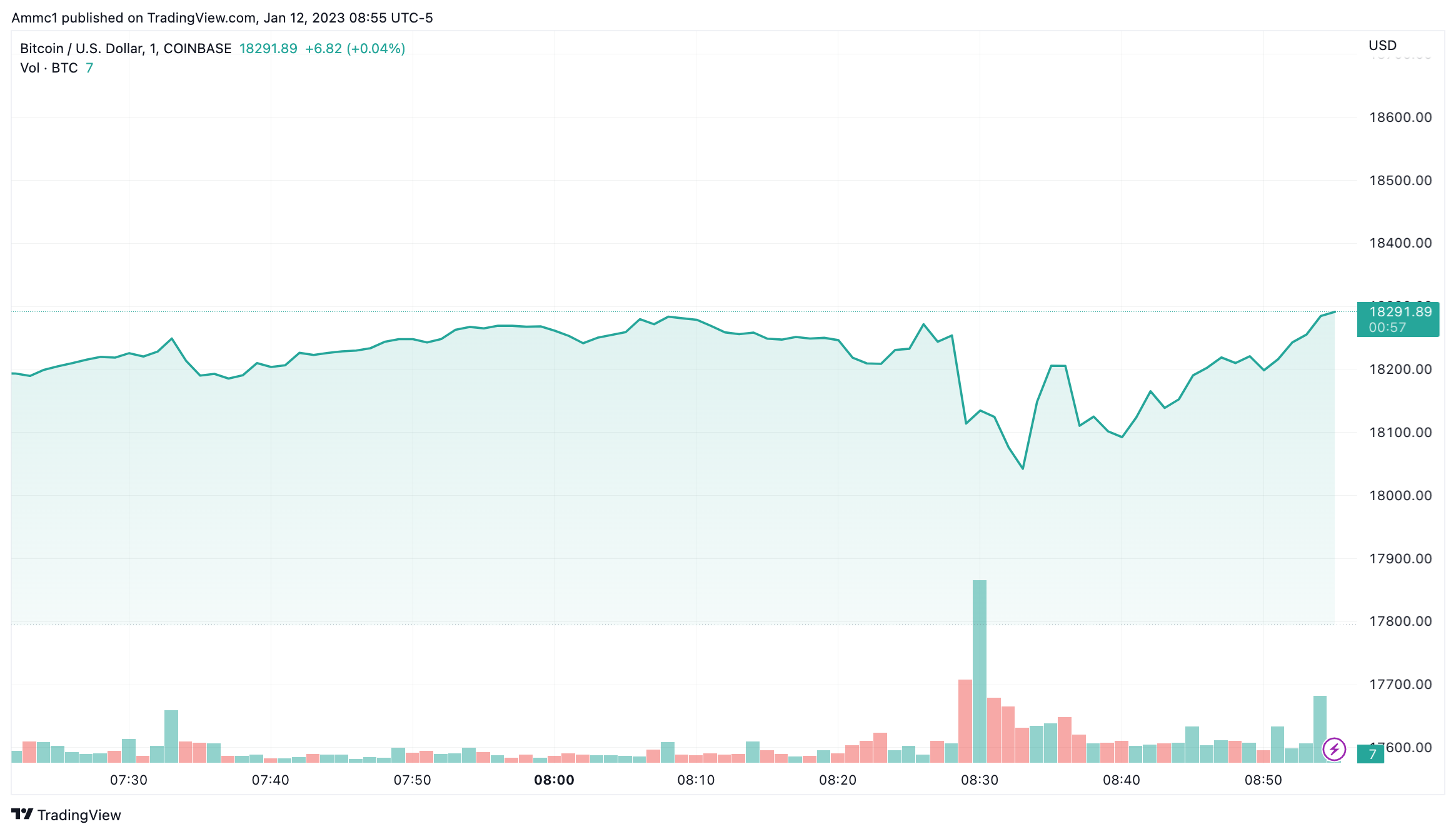 - Bitcoin was trading at $18,291 following the data release, having briefly dipped on the news.