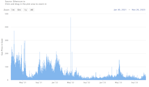 The average gas price in GWEI may still be low compared to the ‘bull market’ congestion of 2020-22. However, when history repeats itself and average gas price spikes for months at a time, how prepared is your Dapp?