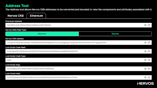 On CKB, an address is simply a serialization of a code hash and arguments. If that sentence doesn’t create an image in your head, check out the “Ethereum” tab of this Address Tool from ckb.tools and watch as an Ethereum address becomes an address on CKB.