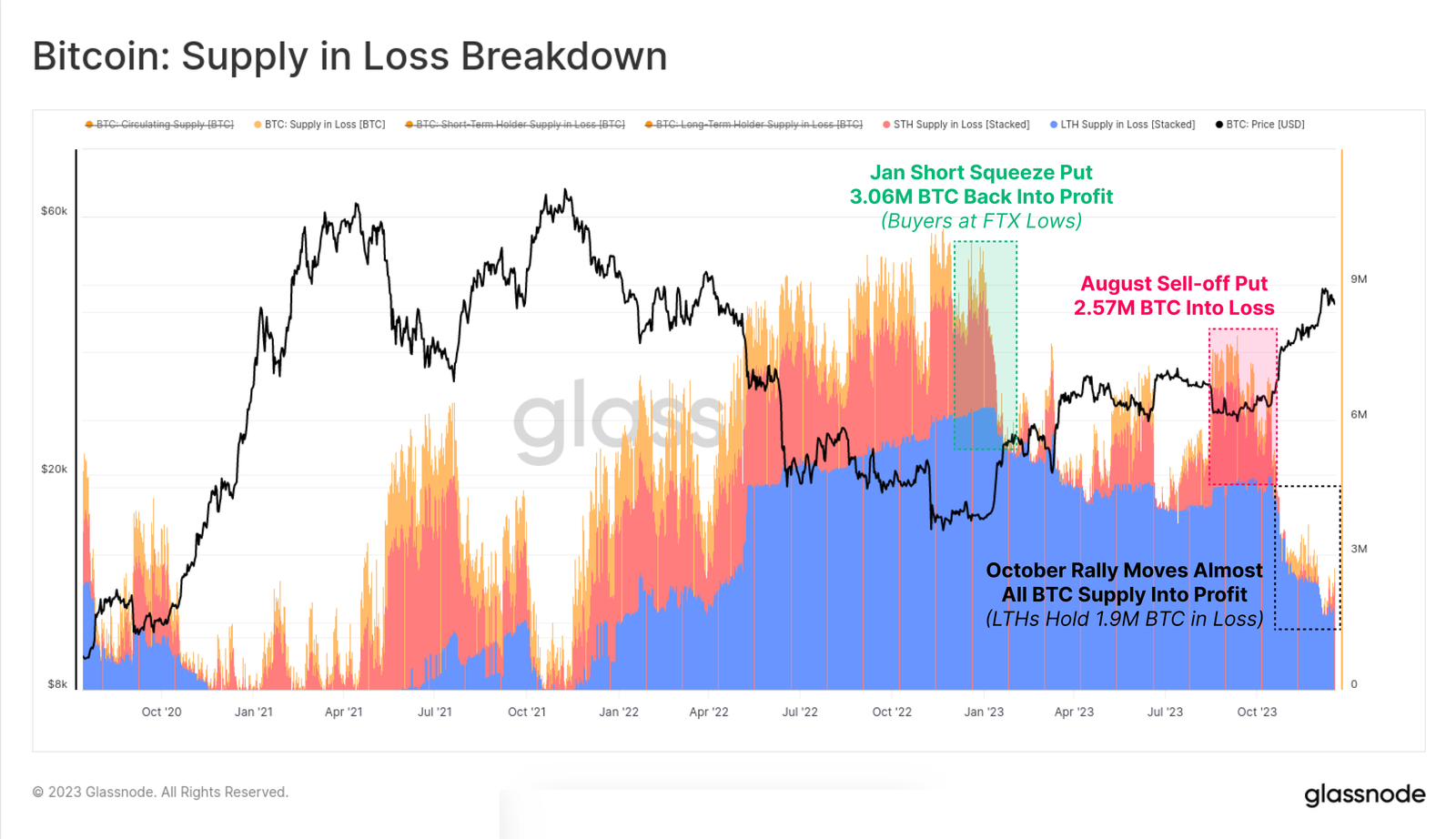 "2023 started out with over 50% of bitcoin supply being underwater, this is one of the fastest recoveries in history, second to the rally in 2019," Coinglass said.