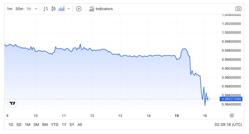 TrueUSD drops below $1 peg to $0.985 amid selloff
