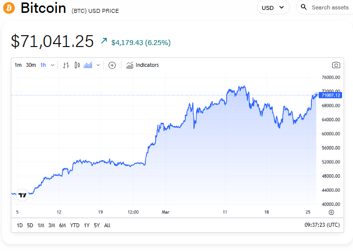 Bitcoin price breaks out above $71,000, causing spike in short liquidations