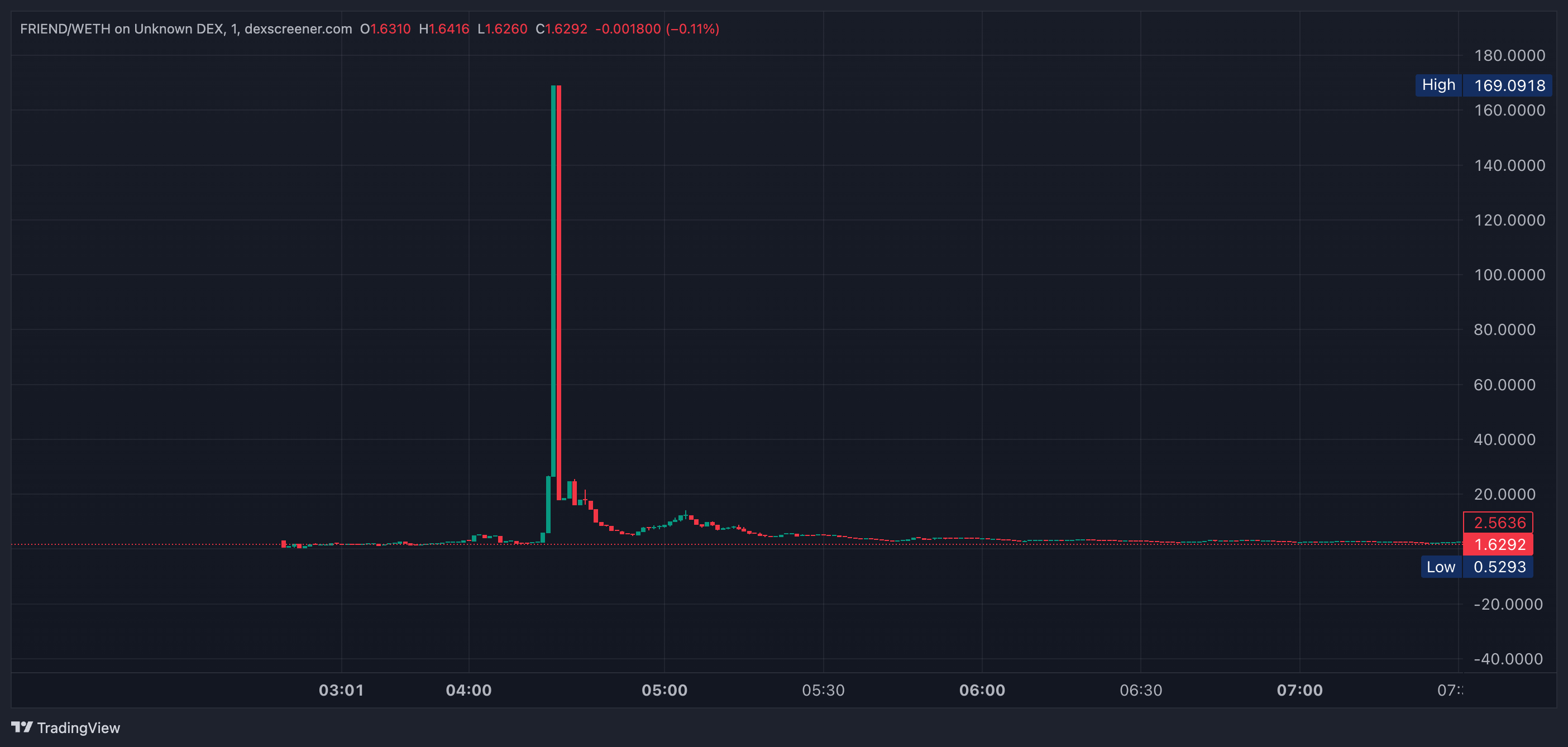 FriendTech’s native Friend token dropped sharply from trading over $10 after its launch to $1, marking a fall of over 90% before slightly recovering.