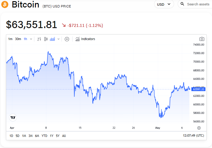 The price of bitcoin has held above the $63,000 mark over the past 24 hours. Image: The Block.