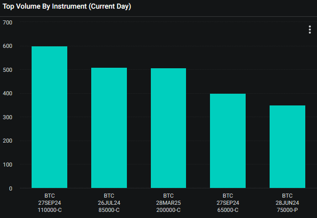 Bitcoin calls at a strike price of $110,000 are the current top volume by instrument on Deribit. Image: Deribit.