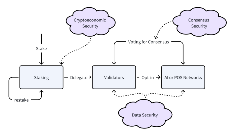 Mind Network's solution is Dual Staking and even Triple Staking. Staking supports liquidity staking tokens of BTC/ETH and blue-chip AI network tokens, diversifying risks and increasing the overall security of the network, essentially an advanced version of shared security in Restaking.