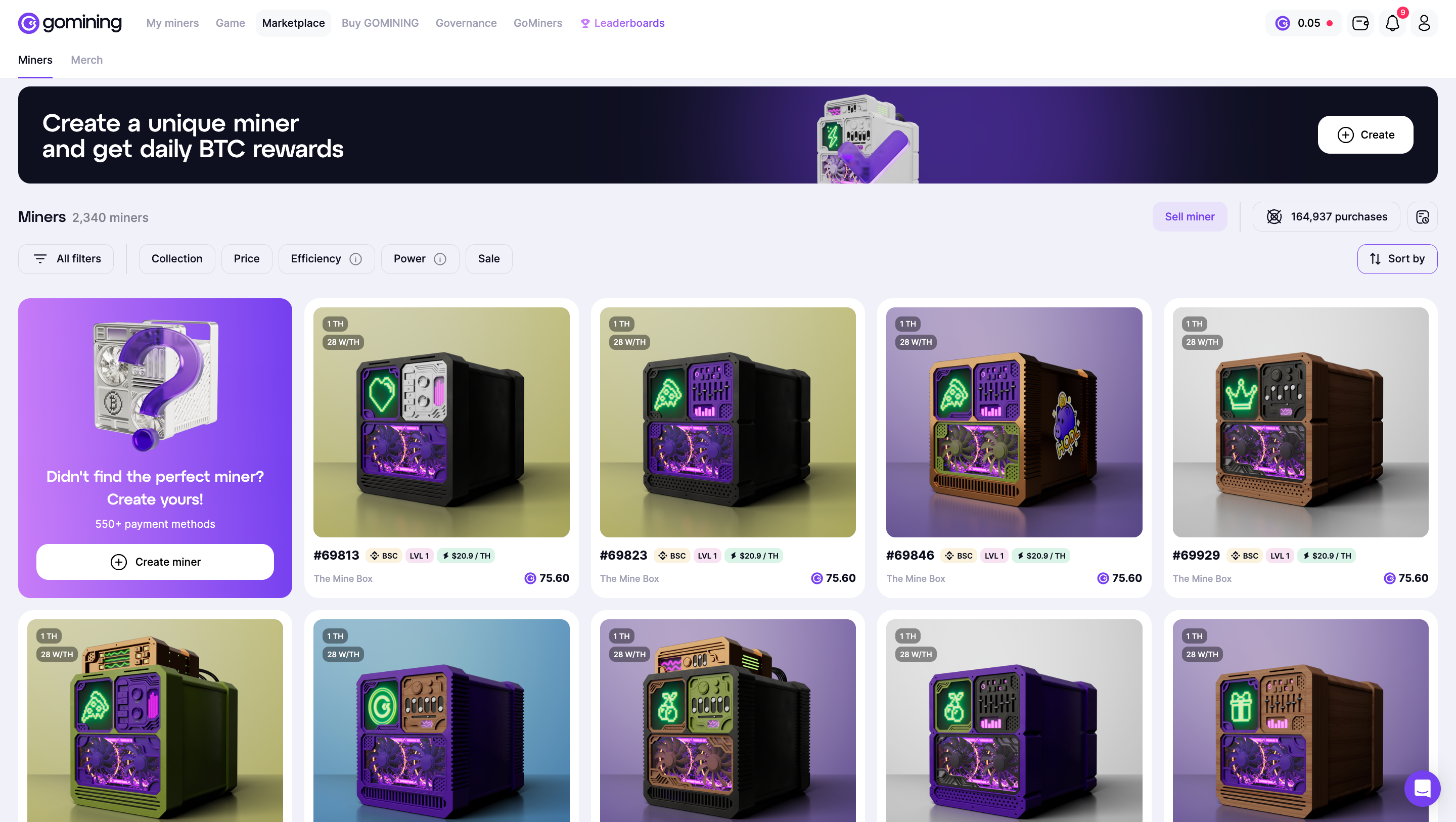 Various digital miners on GoMining Marketplace. Source: GoMining