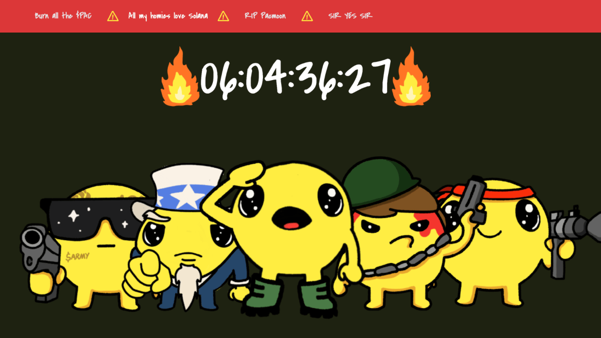 The Pacmoon team advised holders to burn their $PAC tokens before Aug. 14, and said that it will airdrop holders the new $ARMY token based on how much $PAC tokens they burnt. The Pacmoon website currently displays a countdown that appears to show the migration will take place in six days, on Aug. 14.