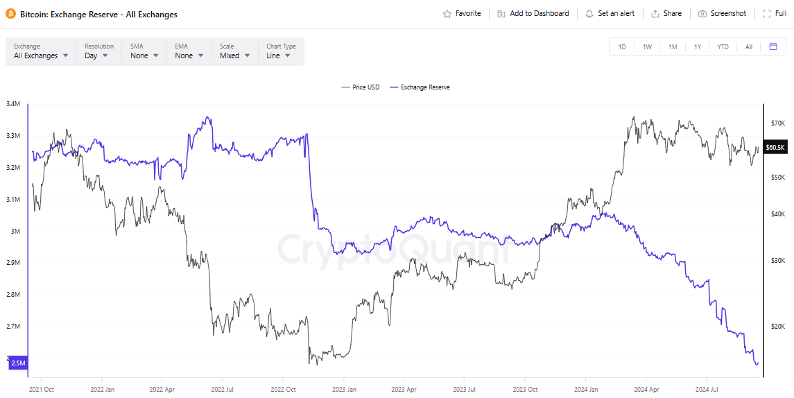 Another metric has also shown a month-on-month reduction in the liquid supply of bitcoin on centralized exchanges. According to CryptoQuant data, there are around 470,000 fewer bitcoin on centralized exchanges than at the beginning of this year, a fall of around 15% from January until September.