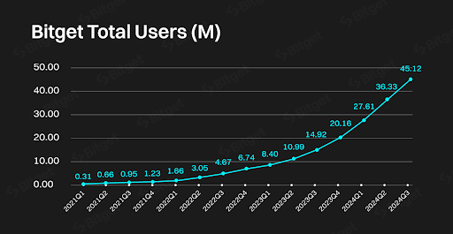 Victoria, Seychelles, September 18th, 2024 – Bitget, the leading cryptocurrency exchange and Web3 company, proudly celebrates its 6th anniversary with a significant milestone — surpassing 45 million users worldwide, overtaking its competitors becoming the fourth largest crypto exchange by trading volume. The platform boasts as the fastest growing exchange with 400% user growth since last year.
