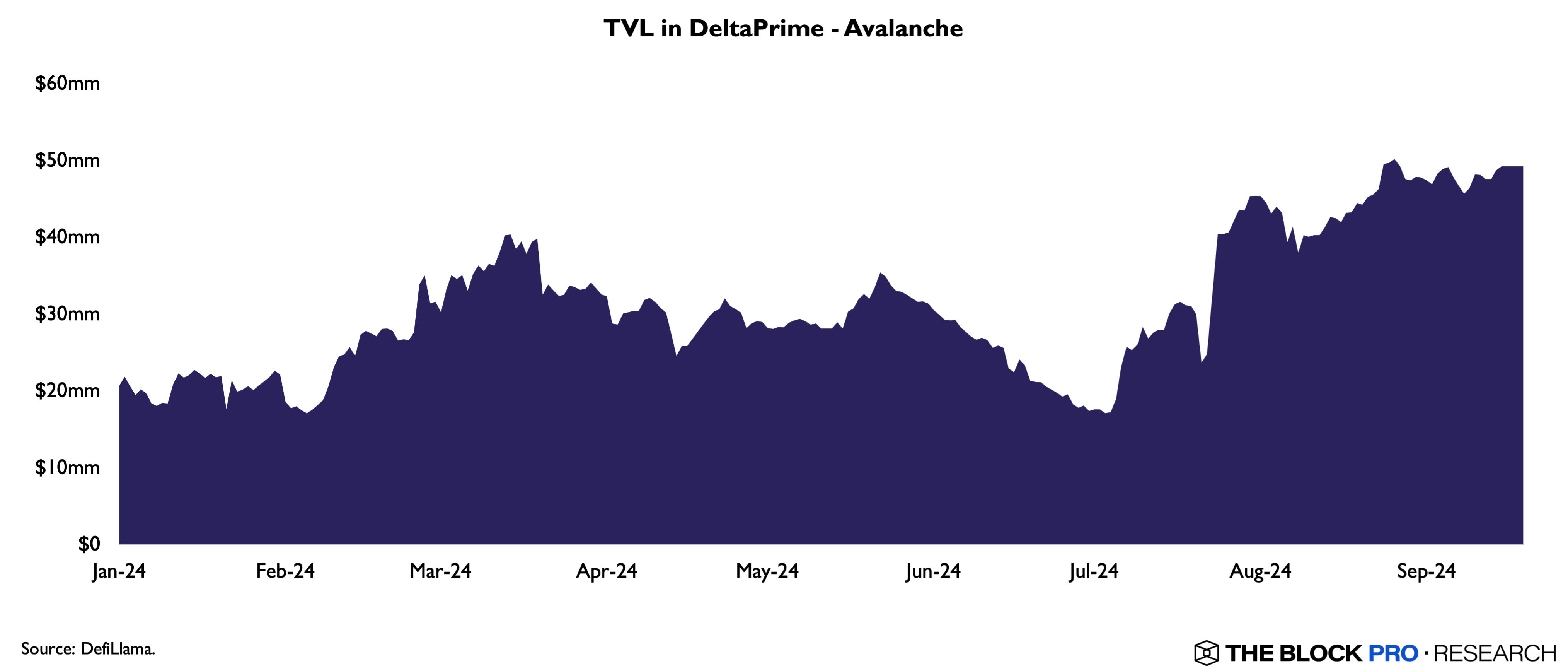This multi-layer incentive structure has been especially beneficial for DeltaPrime, which has seen its TVL grow by ~179% since the start of July as of this writing. It is worth noting that while leveraged farming protocols contribute to deeper liquidity within DeFi ecosystems, they also introduce additional risks for users due to the use of leverage and the integration of multiple protocols, each with its own underlying safety assumptions. Recently, on September 16th, DeltaPrime’s Arbitrum deployment was exploited for ~$6 million due to a private key compromise, incurring losses for users who would have otherwise been unaffected if they had only used the underlying protocols. Thus far, the exploit does not seem to have impacted DeltaPrime on Avalanche, which has a time lock on contract owners as an extra safety feature.