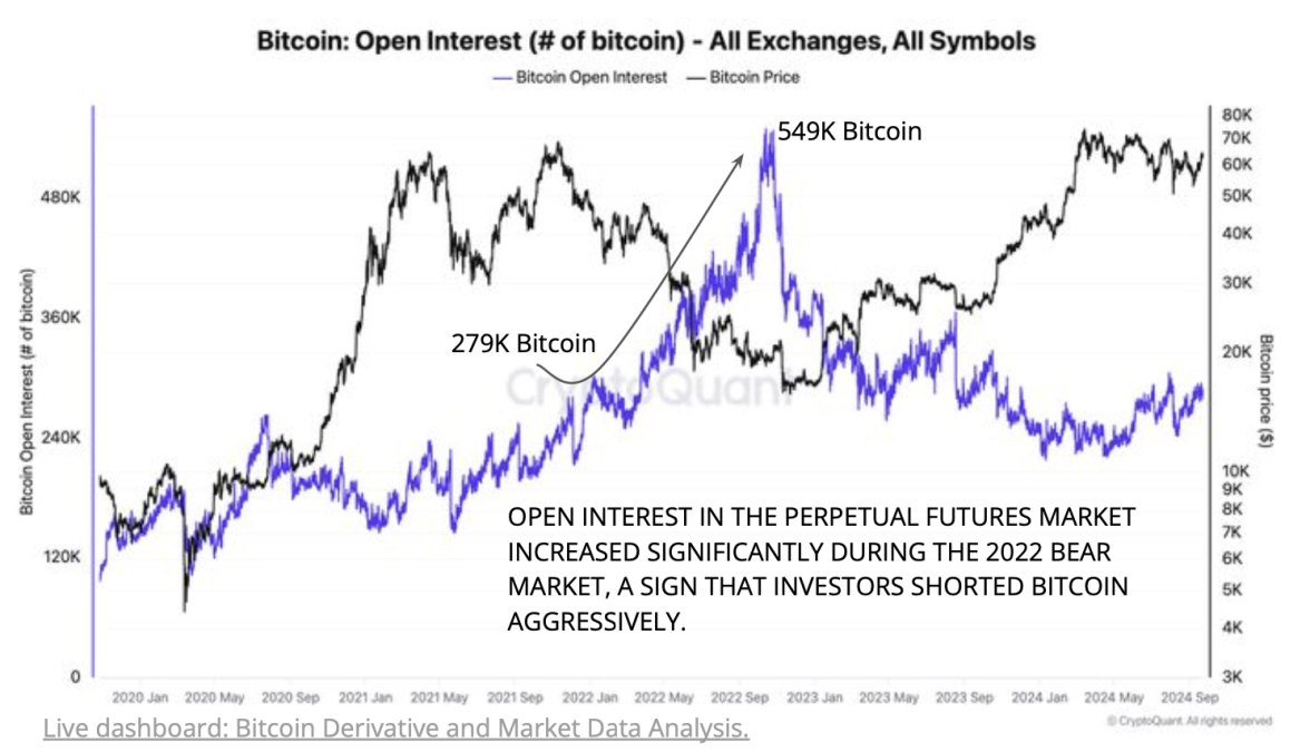 Bitcoin perpetual futures open interest increased significantly during the 2022 bear market. Image: CryptoQuant.