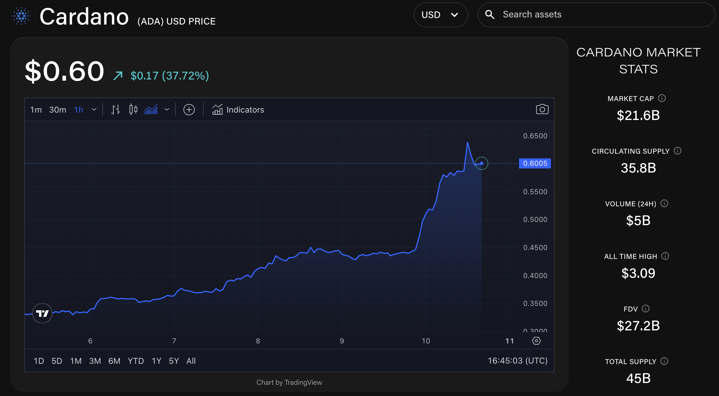 - The price of Cardano is also on an upswing after founder Charles Hoskinson declared his intention to shape crypto policy development in the Trump administration.