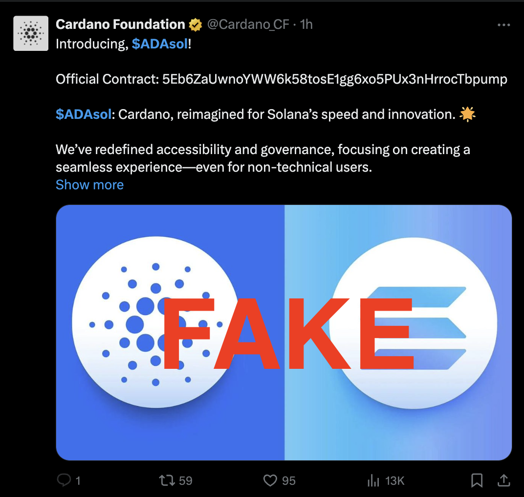 Hacked Cardano Foundation X account posts fake token, false SEC lawsuit notice