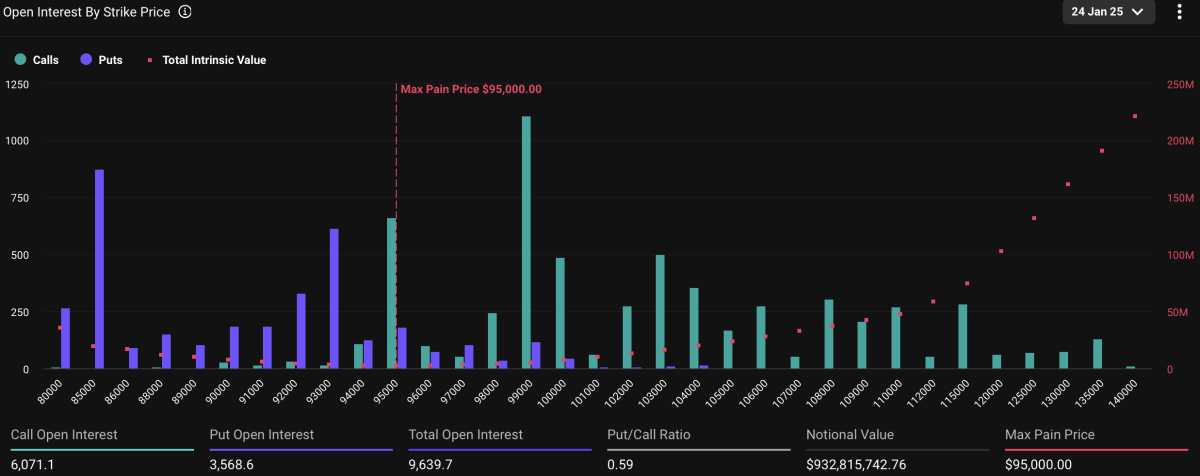 According to data from Deribit, the first major bitcoin options expiry of the year, set for January 24, two days after the inauguration, shows a slightly bullish skew. The put-call ratio stands at 0.57, with the largest cluster of contracts centered on bitcoin calls at a strike price of $99,000. "Derivatives market indicators suggest volatility to persist through January," QCP Capital analysts said.