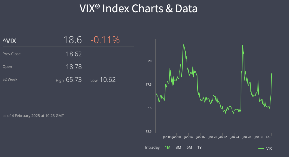 The VIX index shows a sharp increase on Monday. Image: CBOE