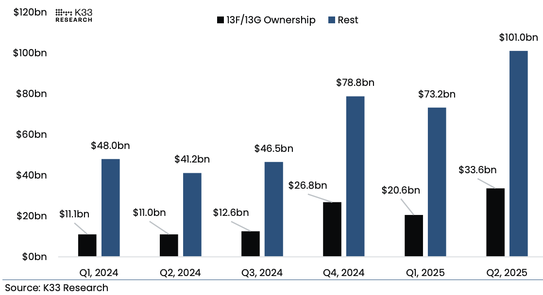 BTC Spot ETF Ownership By Investor Type (Quarterly). Image: K33