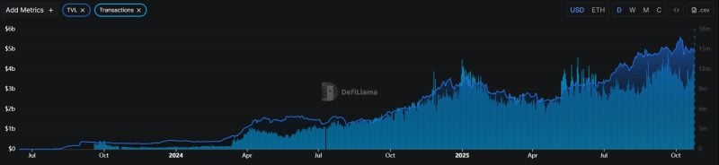 Coinbase Base TVL and Daily Transactions. Source: DefiLlama