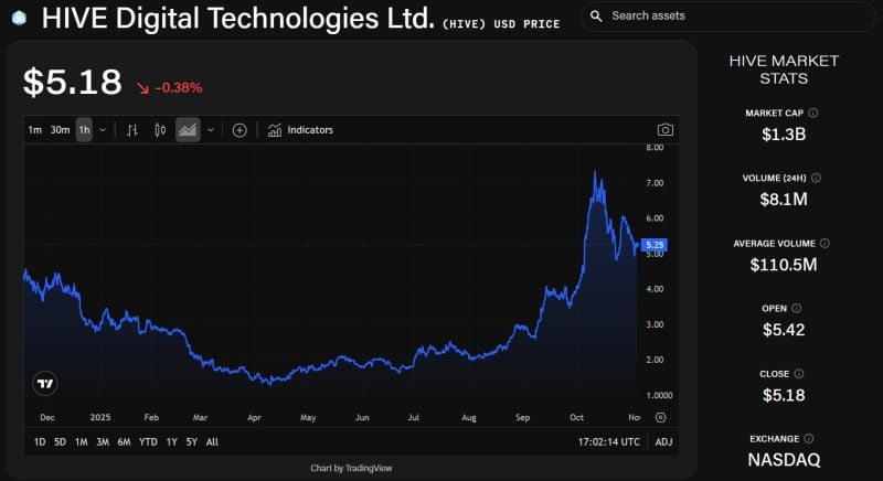 HIVE shares traded around $5.18 on Monday morning, up more than 200% over the past six months, according to The Block's price page.