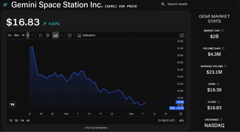 - Gemini Space Station (GEMI) Stock Price. Source: The Block/TradingView.