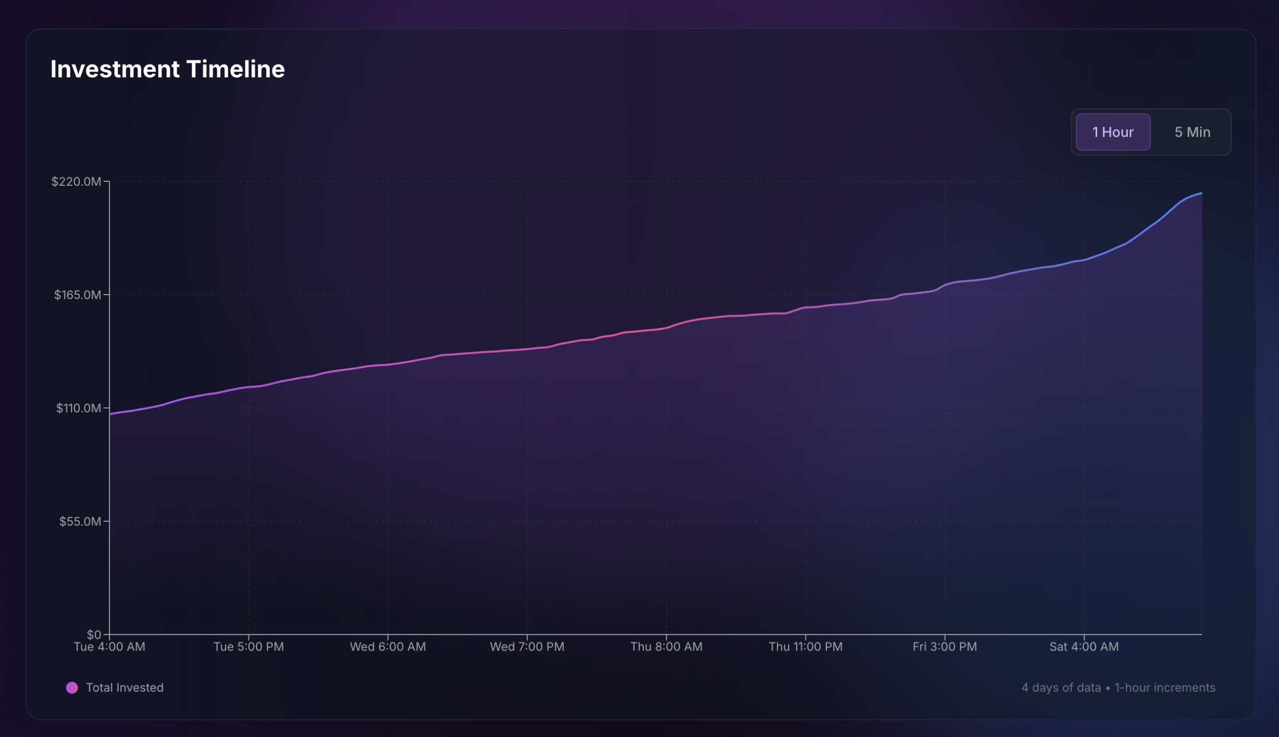 The sale, which sought to raise $187 million in USDC, has raised nearly $216 million as of publication time, over 115% of the target. The pace of buys increased on Saturday ahead of the sale's planned 9 p.m. ET conclusion, according to a dashboard from X user Swishi, with over $43 million in buys over the past 24 hours.