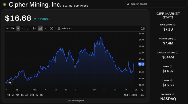 Cipher Mining (CIFR) Stock Price Chart. Source: The Block/TradingView