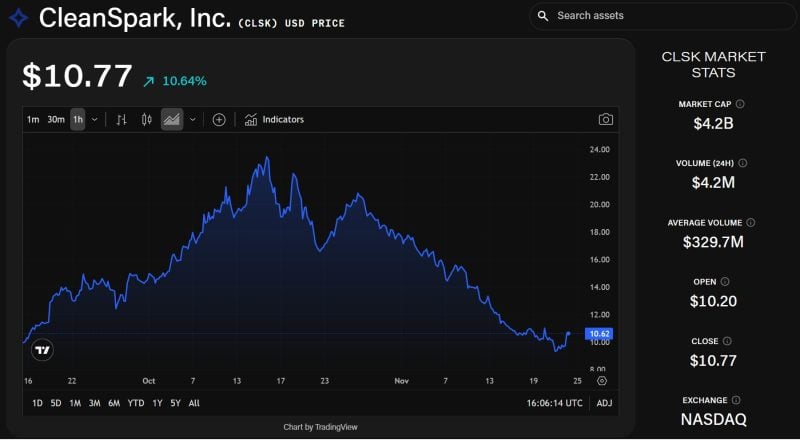 CleanSpark (CLSK) Stock Price Chart. Source: The Block/TradingView